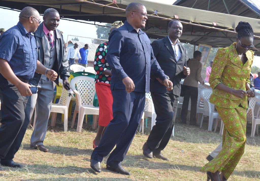 katikati) akicheza moja ya ngoma za kiutamaduni wakati wa kufunga Tamasha la